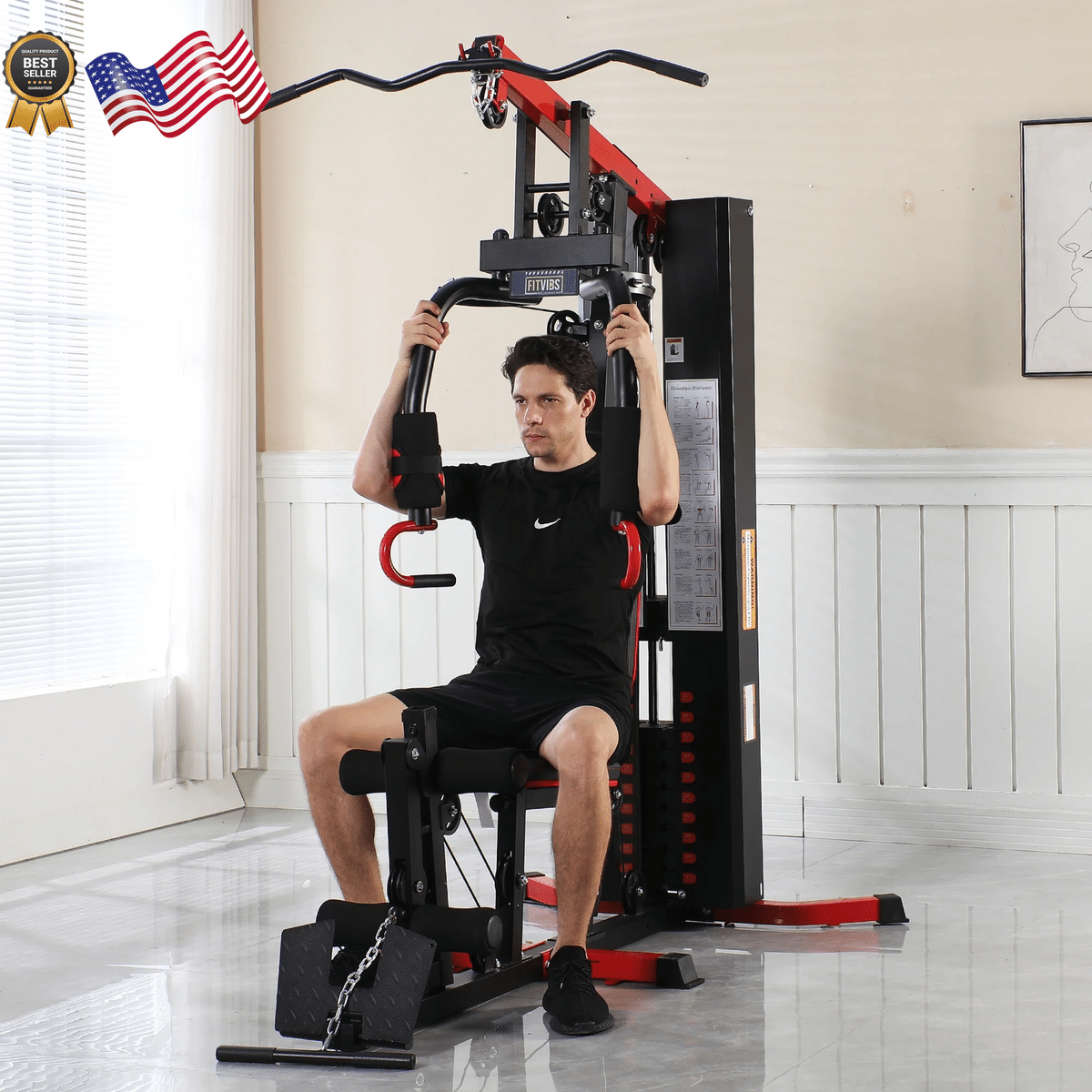 - Adjustable Seat Home gym workout station features a newly upgraded adjustable seat, catering to users of different heights and allowing for various seated positions during workouts to effectively target multiple muscle groups.