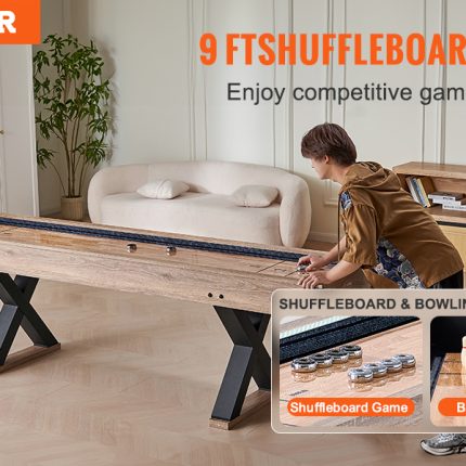 9 FT Shuffleboard Table: The 9-foot length provides ample space for exciting gameplay, while integrated LED lighting spotlights the action, making every game more thrilling and visually appealing.