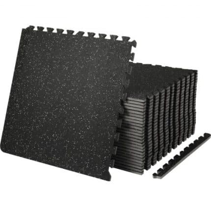 VEVOR 25 PCS 1/2 inch Thick Gym Floor Mats, 24″ x 24″ EVA Foam & Rubber Top Interlocking Workout Floor Mats with 100 sq.ft Coverage, Waterproof Exercise Puzzle Flooring for Gym
